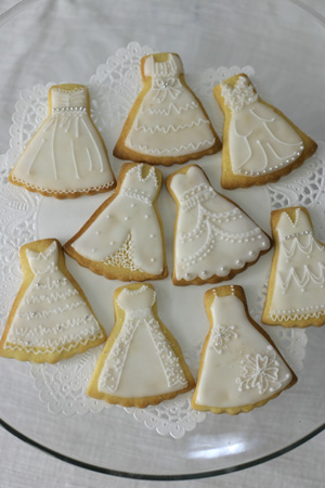 | マリーガトー 2段ミニウエディングケーキ ドレスのアイシングクッキーなど |