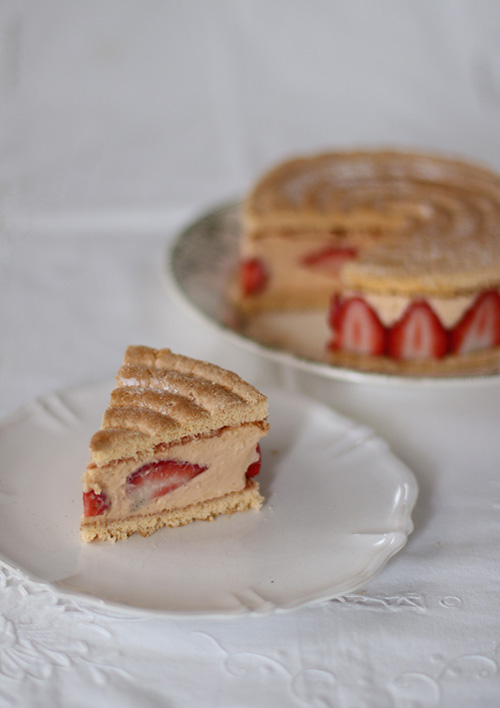 歯ごたえのあるビスキュイ生地に挟まれたクリームは